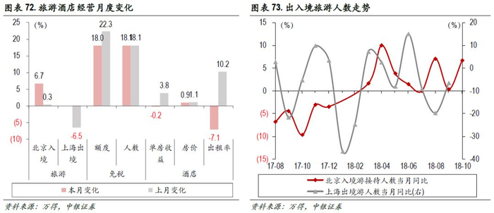本周行业数据未更新。旅游:10月,北京入境游人数同比增6.7%;上海9月出境游同比降6.47%。免税购物:本周数据未更新。酒店:本周未更新。
