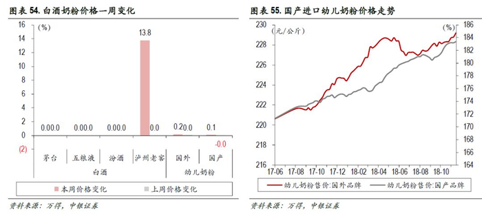 本周,泸州老窖价格上调13.8%。11月第二周,国产和国外品牌幼儿奶粉价格基本未改变。