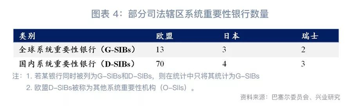 对于系统重要性金融机构的数量和认定门槛,FSB等国际监管组织并没有刚性的要求,为避免短期内对金融机构造成冲击,监管机构可能根据机构系统重要性得分,在过渡期逐步增加系统重要性金融机构的数量。