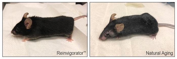 同龄姐妹小鼠(左侧得到NMN干预,右侧自然衰老)
