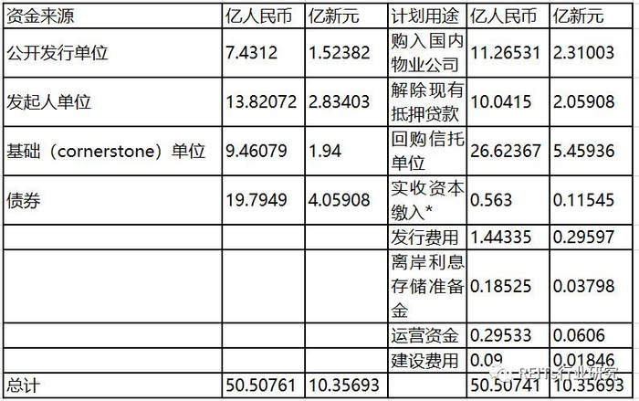 ECWorld REIT在新交所上市,随即对信托单位进行回购,发行及回购完成后总单位共计777,512,000,按发行价0.88计算市值为6.30亿新元。加上同时发放的债券4.06亿,共计计划筹集资金10.36亿新元。