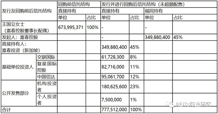 2. 发起人于2015年8月在新加坡设立私人信托EC World Trust,仅含1信托单位,由富春控股董事长夫人持有;
