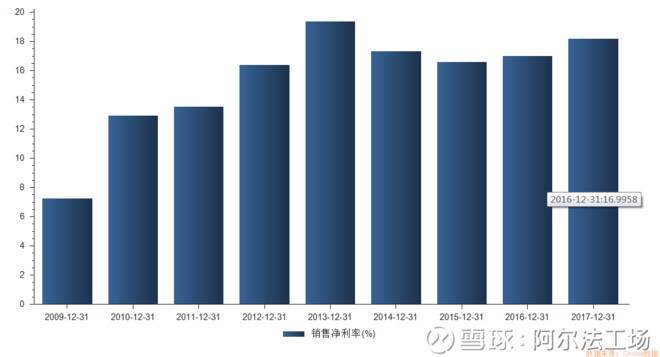 收入10年复合增速25%,利润复合增速也非常高,而且利润率保持在16%这个稳定高位。资产负债率也从2009年60%+降至现在的30%。