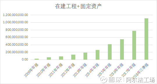 从2010年到现在,扬杰科技周转率直线下降——从1.7降到了0.5,这是扬杰科技净资产收益率变差的主要原因。而资产周转率下降的根源是:应收账款从5000万增长到7亿;而在建工程和固定资产从2600万增长到11亿。存货从3900万增长到3亿。
