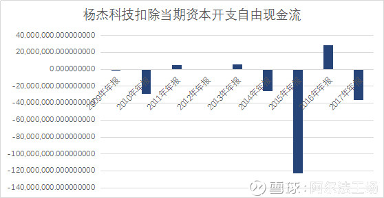 而现金流量表则更加准确的揭示了扬杰科技的真实底色:从2009年到2017年,这家公司扣除每年资本开支之后,自由现金流总额为负数。