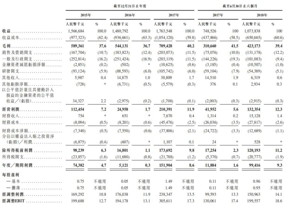 根据创梦天地的招股书披露,2015年-2017年,公司收益分别为人民币15.67亿元、14.81亿元及17.64亿元,毛利分别约5.89亿元、5.44亿元、7.09亿元。净利则为人民币7438.2万元、512.1万元及1.52亿元。