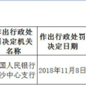 11月15日,中国人民银行长沙分行公布的《行政处罚信息公示表》显示,中信银行长沙分行因违反支付结算业务相关规定,被警告,并被处以23.76万元罚款,相关责任人也被处以1万元罚款。作出行政处罚决定日期为2018年11月8日。