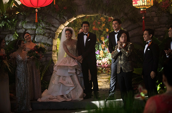 《摘金奇缘》更像是探究亚洲富人思维、消费习性与交际圈的敲门砖。片中的大型奢华派对婚礼、灰姑娘嫁入豪门、婆媳间勾心斗角、爱情与家庭取舍、门不当户不对的悲剧、恋人间最纯粹的浪漫等等元素,虽然有炫富、洒狗血、催热泪的功能,但最终的目的都是在为全球亚洲人发声。它的“金”天动地只不过是工具,从单身派对到昙花圣宴,都只是用来大造娱乐感十足的喜剧元素。抛却一切华丽外衣,它的文化议题才是电影欲意阐述的。爱情仅是强化命题根基的陪衬,杨尼克家财万贯的设定更不是只为了让观众猎奇和羡慕,而是以富豪主题来批判亚洲人本身的各式通病或陋俗礼节是怎么阻断了家庭关系的和谐。