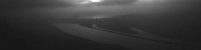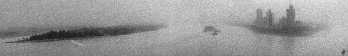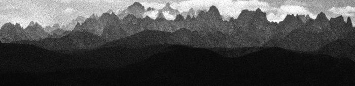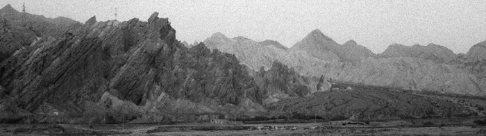 在这张照片中,前景因为曝光不足而呈现黑色,但远处的山脉却清晰可见。我把照片里中轴线以外的部分裁切掉,余下的部分被放大后就显现出了自然山水的水墨质感。这张照片也就变成了一个手卷。