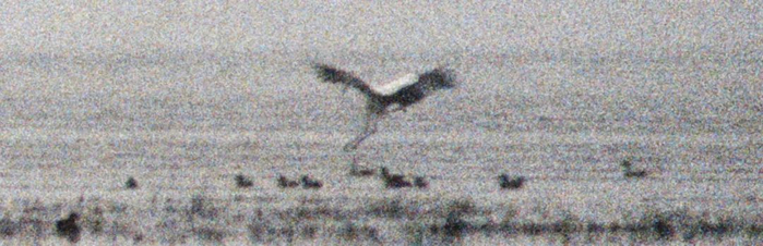 回家冲洗之后,我特意选择了那些最模糊的底片。我想用这种模糊,以一种含蓄的方式表现那些鹤的生存环境。所以,最终在作品中,你看不到挖沙船,只有鹤本身。
