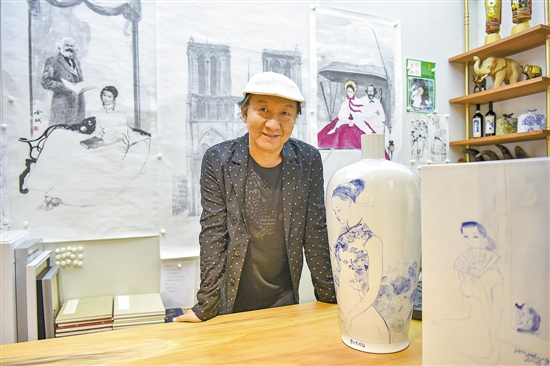 “喜羊羊之父”黄伟明曾在《羊城晚报》上连载漫画《甘先生》 摄影 宋金峪