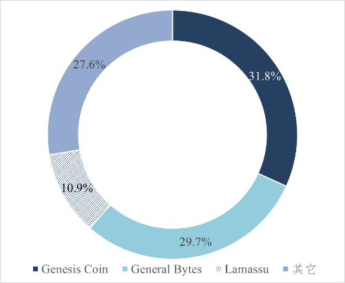 数字加密货币ATM作为新兴事物,尚未被广泛接受。截至2018年10月,目前美国安装2175台,占全球66%; Genesis Coin、General Bytes、Lamassu等三家供应商合计占数字加密货币ATM市场份额约72%,见图3。