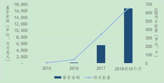 图4 ICO历年募资金额和项目数量