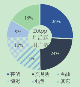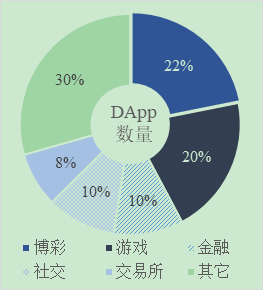 尽管还存在这样或那样的不足,智能合约的出现催生了更加丰富的商业和政务应用,并帮助区块链深入到越来越多的垂直行业中。智能合约赋予了区块链网络运行代码逻辑的能力,DApp(分布式应用)应运而生。截至2018年11月,DApp数量合计2259个,月活跃用户近21万人,其应用场景较为有限,总体上看还处于发展早期。DApp数量和用户数分布见图5。