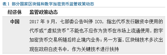 区块链应用的最大阻碍是监管的不确定性。值得注意的是,虽然各国政府对待数字加密货币的态度不同,但对区块链本身总体上都是支持态度,见表1。