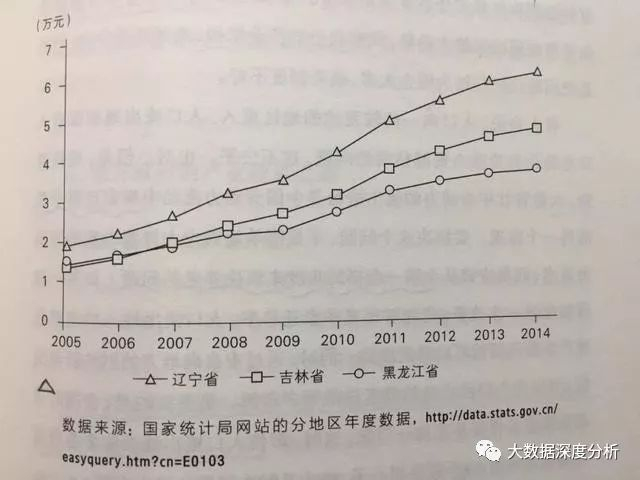 从数据来看,东北三省2014年的人均GDP是10年前的大约3倍。而同时期,东北三省的居民消费物价大约上升了30%~35%。扣除物价指数之后,辽宁、吉林、黑龙江三省2014年的人均GDP分别是2005年的2.6倍、2.8倍和2倍。