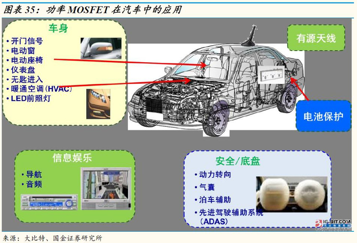 随着汽车功能电子化趋势的不断增强,功率MOSFET是提供低功耗和更小尺寸的理想器件,被广泛用于许多汽车应用,如防抱死制动系统(ABS)的油压阀控制、电动窗和LED照明的电机控制、气囊、暖通空调(HVAC)系统、动力总成应用、电子动力转向和信息娱乐系统等。