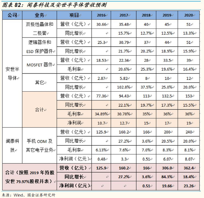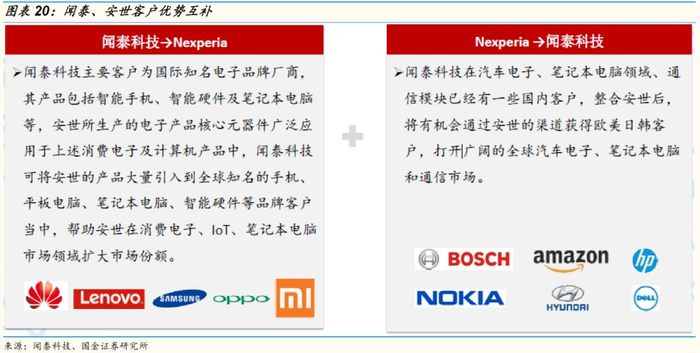 3)安世半导体与闻泰ODM业务具有突出的协同作用:安世半导体的逻辑芯片、分立器件均是闻泰科技产品的上游元器件,收购安世可以帮助闻泰规避上游电子半导体器件价格波动的风险;另一方面,安世目前的客户主要是海外客户,闻泰能够通过自身的渠道以及客户资源帮助安世进入中国以及其他亚太市场,双方各取所需,形成强劲的协同作用。