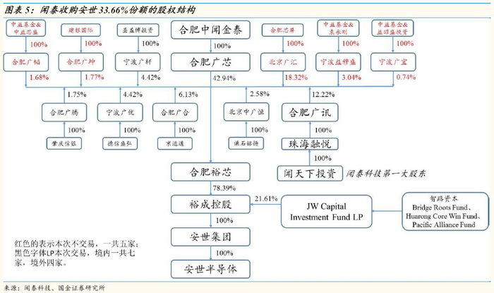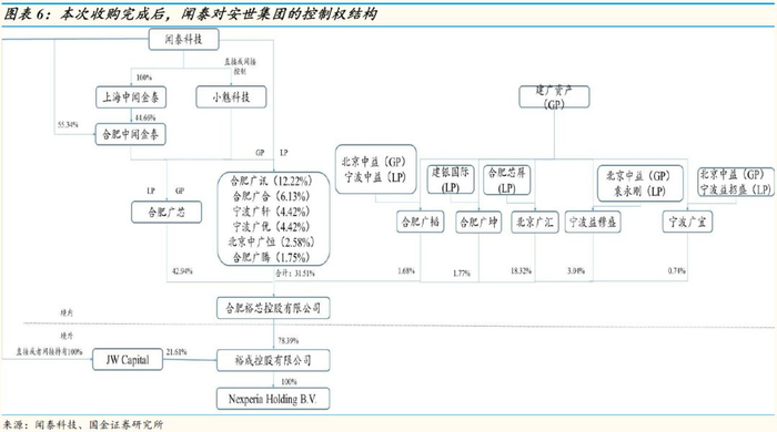 闻泰科技计划换股+现金的方式收购安世半导体79.97%股权,交易完成后,闻泰科技对安世半导体的控制结构如下图所示。