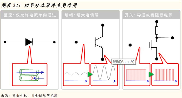 功率器件是电子装置电能转换与电路控制的核心,主要用于改变电压和频率,或将直流转换为交流,交流转换为直流等的电力转换,也可精准的将发动机从低速到高速的循环运转,或用于太阳能电力转送至电站,或给各家电、电器等提供安定的电源,并同时可具有节能的功效。