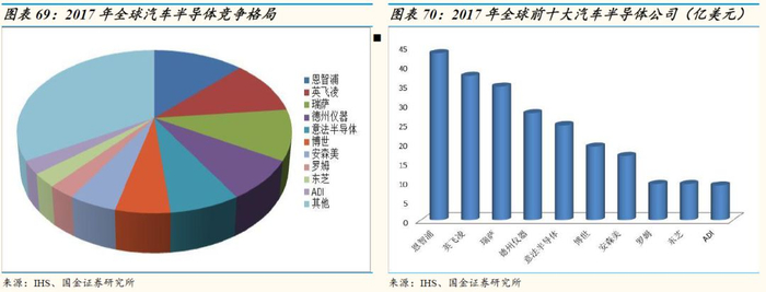 2017年,全球汽车半导体市场规模达到345亿美元,恩智浦排名第一,前五家公司计占比达到48.4%。
