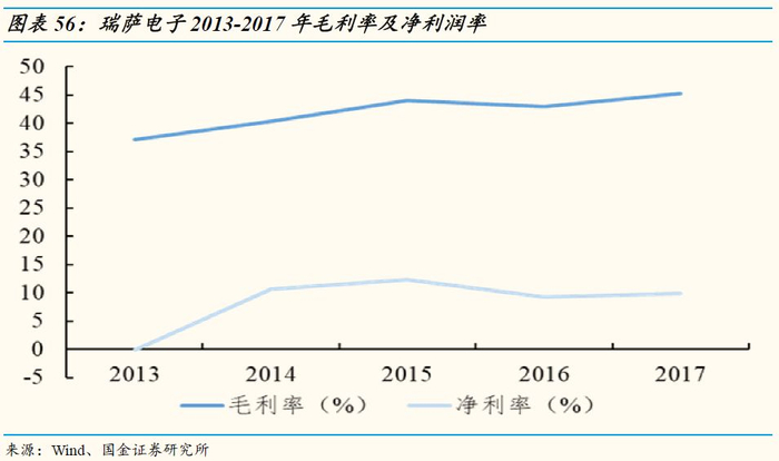 2)切入市场更大,盈利更强的半导体行业:智能手机ODM行业毛利率较低,且在产业链中议价能力不强,行业景气度下滑时容易受到下游寡头压制;半导体行业则属于高壁垒行业,技术和资金壁垒非常高,是制造业中的核心产业。根据WSTS的数据,2017年全球半导体销售额达到4122.21亿美元,其中分立器件销售额达到216.51亿美元。