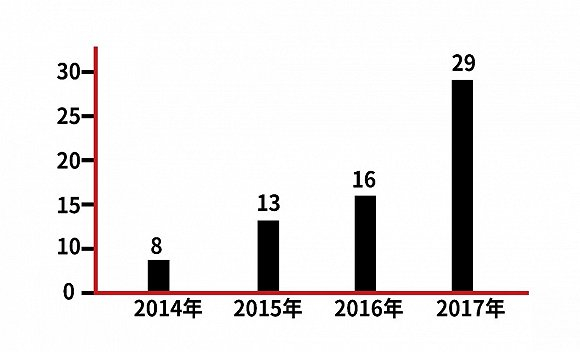 尽管如此,这两年国产剧的续集作品的确越来越多了。毒眸(ID:youhaoxifilm)统计了2014年至今在优爱腾上线的系列剧数量。2014年到2017年,续集数量逐年递增,分别是8部、13部、16部和29部。