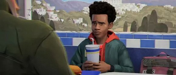 第二段是电影中的完整场景,故事发生在迈尔斯被一只放射性蜘蛛咬伤后不久,迈尔斯在学校遇到了一个名叫旺达的新来的女孩,他无法在其周围控制自己的能力,很快他的手就粘在了女孩的头发上。这两个人都被对方弄得很尴尬,最后不得不给旺达剪了头发才使得两个人分开。