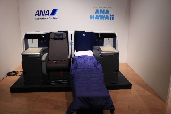 全日空还把四舱座椅搬到了发布会现场,供参与者体验。