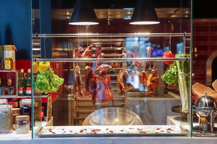 2层的“飨艳YEN”中餐厅,有11间面向曲江的独立景观包间,主打粤菜、川菜和陕菜,在这里你能品尝到长安有名的“葫芦鸡”;