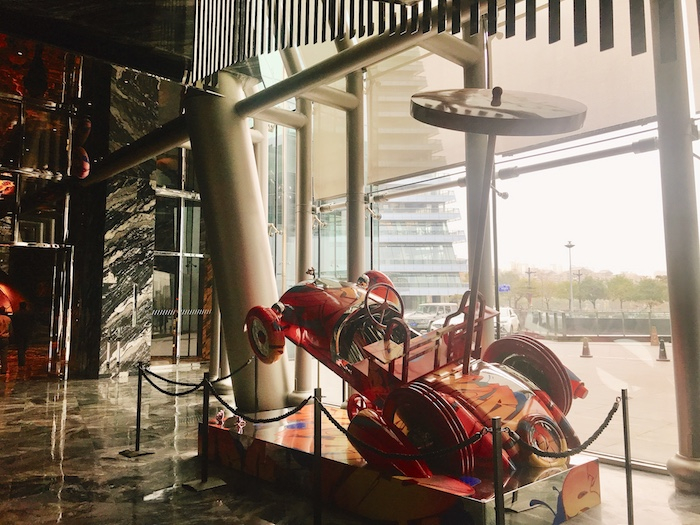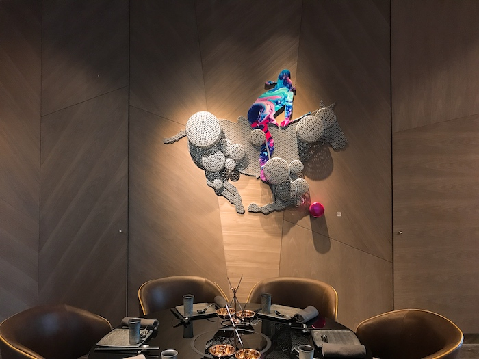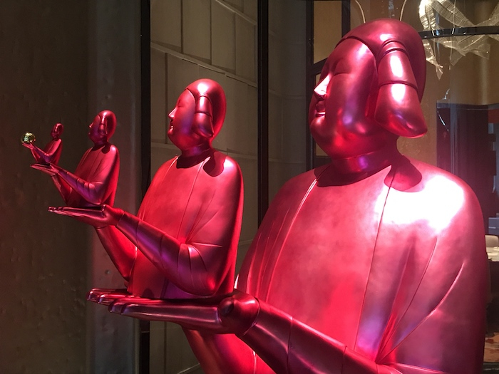 值得一提的是,不同的餐厅外都搭配有艺术品让人们欣赏,艺术的气息渗透进了各个角落中。