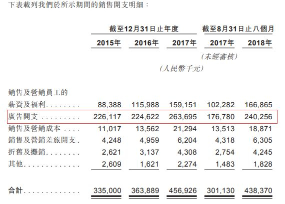 不管是新东方烹饪学校还是新华电脑学校,广告营销都是招生的重要方式。中国东方教育表示,其持续经营销售开支由2015年3.35亿元增长到2017年的4.57亿元,2018年8月31日为止为4.38亿元。其中广告开支占比都过半。