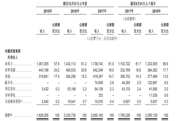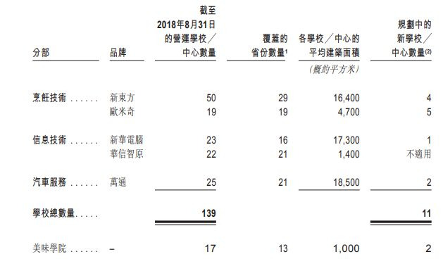 资料显示,截至2018年8月31日,中国东方教育在内地29个省份及香港开设大量学校,涉及烹饪技术、信息技术、汽车服务等职业技能教育。其运营的学校及中心数量从2015年的71所增至2018年8月31日的156所。