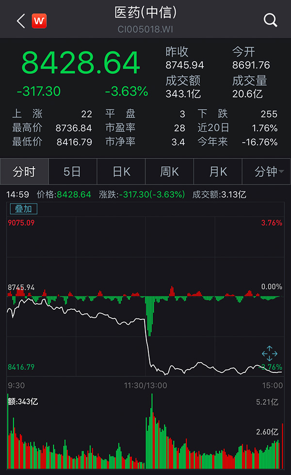 由于价格降幅超出预期。12月6日,A股医药股普遍下挫。乐普医疗(300003)、贝达药业(300558)、普洛药业(000739)跌停。而中标最多的华海药业在下午一度触及涨停,后收于14.93元/股,涨幅为3.04%。