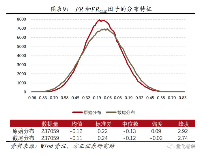 为了更直观地认识和对比原始因子FR和截尾因子FR_Cut两者的特性,我们比较了两个因子在分布和时间序列特征上的差别。