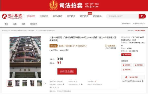 广州400万的房子一半产权10元起拍 买半个房子引争议