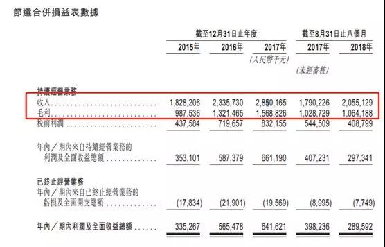 同其他港股教育类公司一样,学费收入为公司核心收入来源,招股书显示,2015年至2017年,该公司收入分别为18.28亿元,23.36亿元、28.5亿元,截至2018年止8个月,营业收入为20.55亿元,各期毛利分别为9.88亿元、13.21亿元、15.69亿元、10.64亿元。各期利润及全面收益总额分别为3.35亿元、5.65亿元、6.42亿元、2.9亿元。