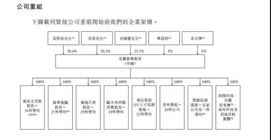 中国新华教育上市前,吴俊保持股达95.7%,其子持股0.97%,合伙企业华园公司持股3.33%。
