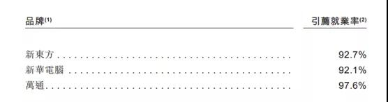 招股书显示,中国东方教育同时提供帮助毕业生找工作的服务,其中新东方烹饪教育、新华电脑教育及万通汽车教育的毕业生平均引荐就业率均在90%以上。截至2018年8月31止八个月,三个学校品牌的推荐就业率分别为92.7%、92.1%、97.6%。