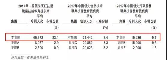 其中业务最强的新东方烹饪学校就2017年平均培训人次而言,占有市场23.1%的份额,而前三大市场参与者合计份额为26.9%。
