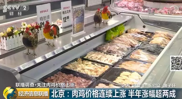 北京物美生鲜采销部副总监陈景元:鸡产品处于全线上涨的状态,到现在为止,均价大概涨了20%到30%,近几年没有出现过这么大的涨幅、延续这么长时间。