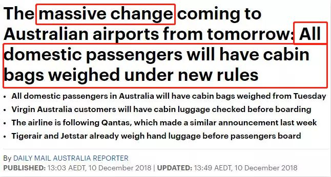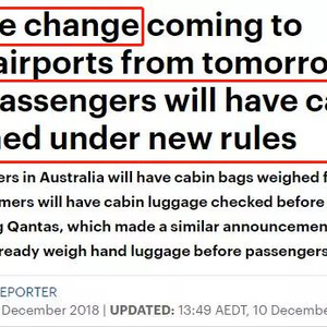 澳洲航班大变革 所有手提行李将接受登机前检查