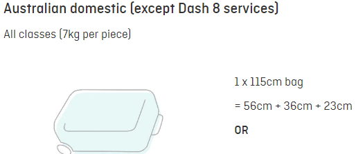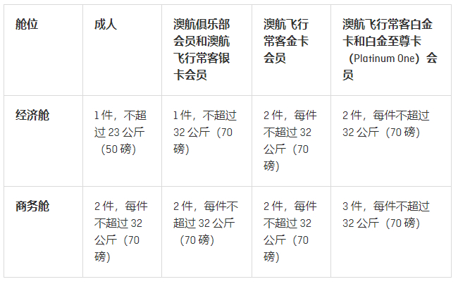 澳洲航空公司的一般行李重量和体积规定。