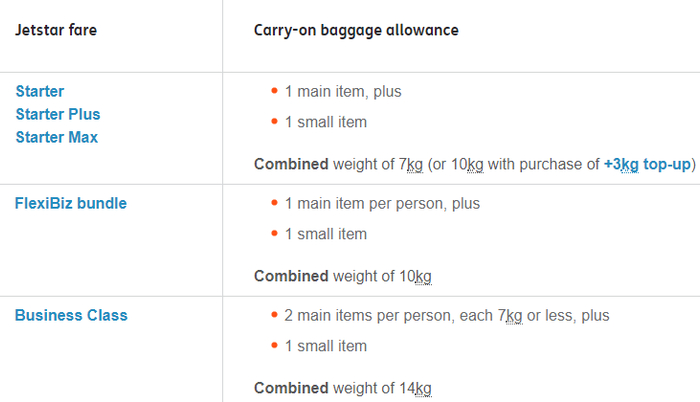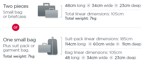 可携带一件主要行李和一件小物品作为随身行李,总重量为7公斤: