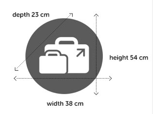 主要行李尺寸不可超过54cmx38cmx23cm