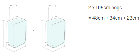2个48厘米x34厘米x23厘米(总线性尺寸105厘米)的行李袋