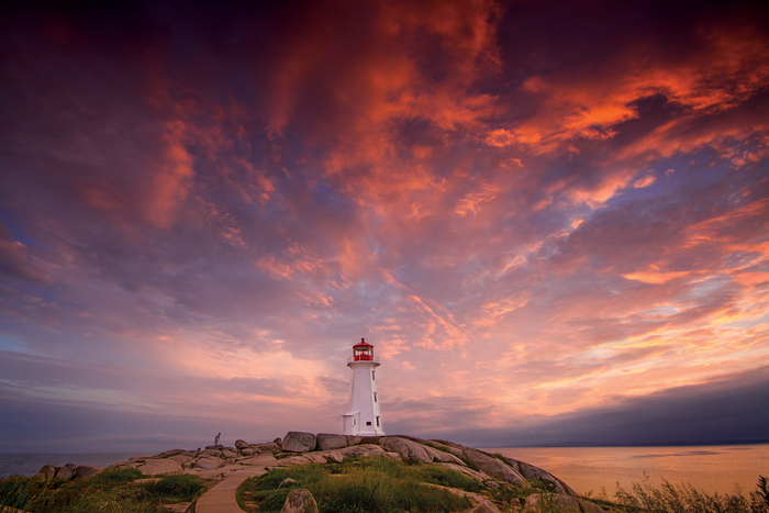 新斯科舍省最具标志性的地点就是佩姬湾(Peggy’s Cove),这里是一个距离哈利法克斯45分钟车程的小渔村。这里有因地质运动形成的巨大岩石和一座红顶白身的灯塔——Peggy’s Point 灯塔,灯塔建于1915年,坐落于巨大岩块的高点,据说这座灯塔是全加拿大上镜次数最多的灯塔。