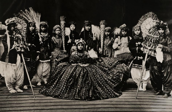 这张照片可能摄于1910年代,多位侍女正站在尼泊尔王后身侧。拍摄:JOHN-CLAUDE WHITE, NAT GEO IMAGE COLLECTION