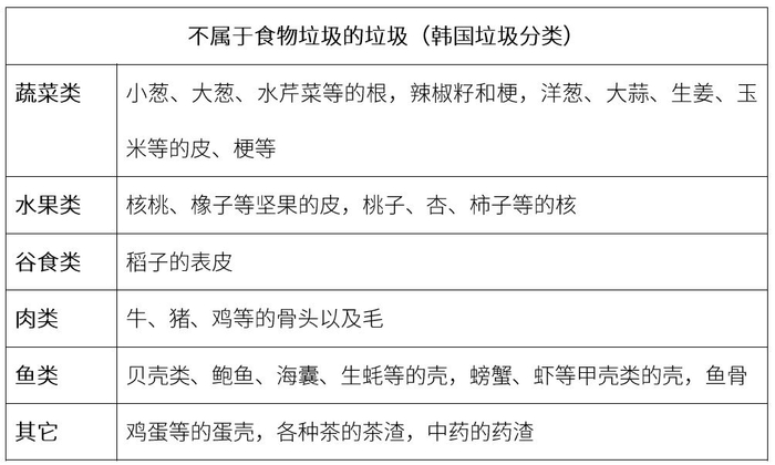 上表中“不属于食物垃圾的垃圾”需要严格分类后,同一般垃圾一起放入普通重量制垃圾袋中丢弃。