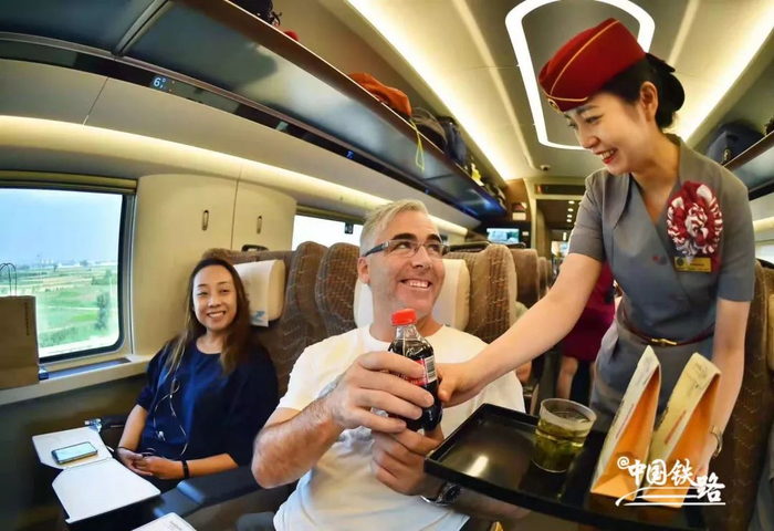 下图:2018年,京沪高铁“动姐”正在服务。杨宝森摄